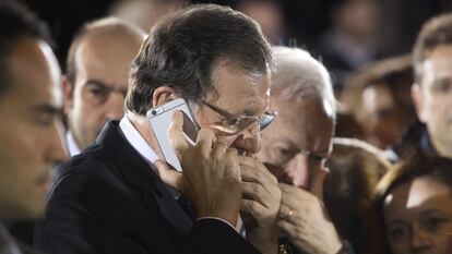 El ministro de Asuntos Exteriores y de Cooperación, José Manuel García-Margallo, que coincidió con Rajoy en el mitin de Orihuela —es cabeza de lista por Alicante—, tuvo varias conversaciones telefónicas con el encargado de negocios de la Embajada en Kabul, Oriol Solá, ante la ausencia del embajador. “El pensamiento de todos está con los que están en la Embajada en Kabul”, dijo Margallo al iniciar su intervención en el acto electoral del PP. Tras recordar que por Afganistán han pasado más de 30.000 militares españoles y que un centenar había perdido la vida para garantizar la estabilidad en la zona, Margallo prosiguió con un mensaje claramente electoral. Algo similar hizo Rajoy cuando dos horas más tarde se subió al escenario donde tenía previsto dar un mitin en Murcia para comunicar que cancelaba el acto por la muerte del policía español en Kabul. “Voy a dar la batalla porque creo que es lo mejor para España”, dijo Rajoy, que incluso llegó a comentar que se había hecho muchos “selfies” justo antes de decir que todos debían estar muy orgullosos de los Cuerpos y Fuerzas de Seguridad del Estado.