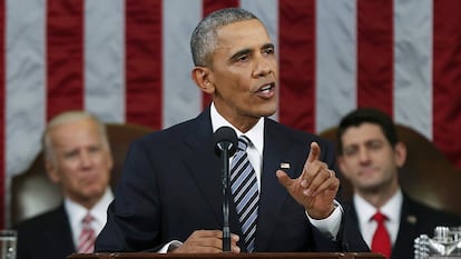 Con un pie en la Casa Blanca y otro ya en la historia, el demócrata Barack Obama reivindicó este martes la fortaleza de Estados Unidos ante la retórica apocalíptica del Partido Republicano y la inquietud de amplios sectores del país con la economía, las élites del país y la rapidez de los cambios demográficos y sociales. En su último discurso sobre el estado de la Unión, el presidente pidió superar la política del miedo que encarna el aspirante republicano a la Casa Blanca Donald Trump. Y señaló como una de las cuentas pendientes de su presidencia la necesidad de inyectar civilidad en un discurso público agrio y crispado.