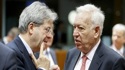 Margallo ha acudido este lunes a Bruselas para participar en una reunión de ministros de Exteriores de la UE, en la que se ha hablado, entre otros asuntos, de la nueva situación en Irán tras la desaparición de las sanciones internacionales (principalmente de las europeas).
