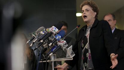 La frase de Rousseff era una respuesta velada a Aécio Neves, del Partido de la Social Democracia Brasileña (PSDB), el rival al que derrotó en las elecciones de 2014. Esta semana, el senador aseguró que Rousseff ha perdido las “condiciones mínimas” para gobernar y sugirió que la renuncia sería “un gesto magnánimo, un gesto generoso para que Brasil inicie una nueva etapa en su historia”. No es el único que piensa así. El domingo, movimientos sociales y políticos de oposición planean una gran manifestación contra el Gobierno en decenas de ciudades de todo el país. Si la convocatoria tiene éxito, aumentará la presión sobre la mandataria del Partido de los Trabajadores (PT), que encara una petición de destitución por supuestas maniobras fiscales y sufre con pocos apoyos en la Cámara de Diputados y una bajísima popularidad entre los brasileños (un 11%, según las últimas encuestas). El Partido del Movimiento Democrático Brasileño (PMDB), el principal partido que aún apoya a la presidenta, debate este fin de semana en su congreso nacional si romper definitivamente con ella.