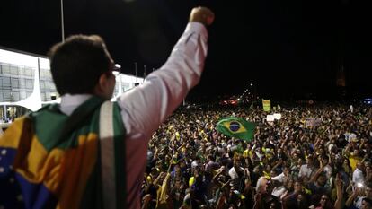 Miles de brasileños salieron de nuevo a manifestarse la noche del miércoles contra el nombramiento de Lula como ministro de la Casa Civil (una especie de puesto de primer ministro). Los ánimos de los manifestantes, ya caldeados por la prolongada crisis política que atraviesa el país, se encendieron al conocer el nuevo cargo del expresidente, sobre el que pesan acusaciones de corrupción y una petición de prisión preventiva. Pero la gota que colmó el vaso fue la filtración de una conversación entre Rousseff y Lula en la que la presidenta avisa a su predecesor del envío de un acta de ministro para firmar "en caso de necesidad". Los investigadores ven indicios de que la presidenta intentaba así ayudar a su compañero de partido, en caso de que el juez Sérgio Moro ordenase su prisión. La Presidencia de la República, por el contrario, dice que se trataba de una llamada puramente burocrática. Que Rousseff le mandó el documento a Lula para que lo firmase por si éste no podía estar presente en la toma de posesión de los nuevos ministros, programada para el jueves por la mañana en Brasilia.