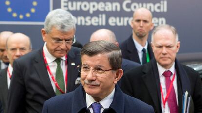Los Veintiocho pactaron ayer las líneas maestras de ese pacto, y definieron las líneas rojas que no están dispuestos a traspasar. Davutoglu aparecía sonriente al filo de las nueve de la mañana con un mensaje que combina un cauto optimismo con una posición de fuerza para defender sus intereses. "Estoy seguro, espero que logremos un acuerdo", ha dicho con calculada ambigüedad. Primero la zanahoria: "Los objetivos de la UE y de Turquía coinciden, ayudar a los refugiados sirios de la forma adecuada". Inmediatamente después, el palo: "Turquía acoge ya a 2,7 millones de sirios y lo ha hecho sin ayudas significativas de ninguna parte. Trabajaremos en Bruselas por respetar los valores humanitarios, que son los valores europeos. Y por la relación entre la UE y Turquía".