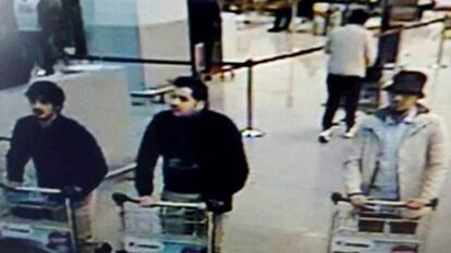 Ibrahim el Bakraoui. Es un belga de 30 años que saltó por los aires en el aeropuerto de Zaventem. Se trata del hombre del centro de la foto captada por las cámaras de seguridad del aeródromo y divulgada por la policía. Tanto él como su hermano Jalid tenían “fuertes antecedentes policiales no ligados al terrorismo”, según confirmó este miércoles ante la prensa el fiscal general belga, Frédéric van Leeuw.