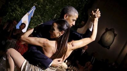Obama llegaba a Buenos Aires después de un viaje a Cuba que él mismo definió como "histórico". Y desde el primer momento quiso hacer historia también en Argentina, donde su visita es polémica porque llega con el 40 aniversario de una dictadura respaldada por EE UU, al menos al principio. Como gesto hacia ese mundo de los derechos humanos en Argentina que tanto le critica, Obama recordó que ha decidido abrir los archivos militares de esa época 10 años antes de que se cumplan los 50 que marca la ley y pidió romper con esa tradicional "desconfianza" de la izquierda latinoamericana hacia EE UU.