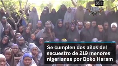 Son algunas de ellas. Por primera vez desde hace dos años se ha podido ver en un vídeo a 15 de las más de doscientas niñas que fueron secuestradas por Boko Haram en la localidad nigeriana de Chibok. La cinta, que fue entregada por miembros del grupo terrorista como prueba de vida a los negociadores que intentan conseguir su liberación, fue grabada el pasado 25 de diciembre pero se ha hecho pública este jueves, justo cuando se cumple el segundo aniversario del rapto. La cadena de televisión CNN, que ha difundido una copia, ha mostrado las imágenes a los padres y al menos tres de las chicas fueron identificadas.