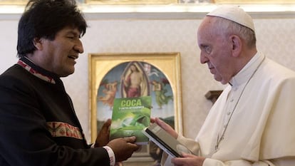 El presidente de Bolivia le regala a Francisco tres libros sobre la planta andina durante su visita al Vaticano