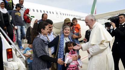 El Papa vuelve de Lesbos con 12 refugiados que acogerá en El Vaticano