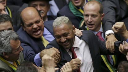 La inmensa mayoría de los 513 diputados que votaron este domingo a favor del impeachment de la presidenta Dilma Rousseff pareció olvidadarse de los verdaderos motivos que estaban en discusión. Los diputados defendieron la destitución de Rousseff por las razones más diversas: “por mi esposa Paula”, “por mi hija que va a nacer y mi sobrina Helena”, “por mi nieto Gabriel”, "por la tía que me cuidó de pequeño", “por mi familia y mi Estado”, “por Dios”, “por los militares del [golpe del] 64”, “por los evangélicos”, “por el aniversario de mi ciudad”, “por la defensa del petróleo”, “por los agricultores”, "por el café" e incluso “por los vendedores de seguros de Brasil”.