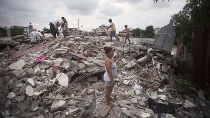 Este lunes las tareas de rescate se centraban en los hoteles del centro de Pedernales. El 95% de la infraestructura hotelera está dañada y los hoteles de la línea de playa aún no han sido inspeccionados. “Allí existe población flotante y nadie los está buscando”, dice el capitán Egas y cuenta que hasta ahora se ha rescatado a dos médicos cubanos y un turista italiano. La mayor parte de los hoteles perdió su primer piso, las columnas cedieron y el resto de las plantas se asentó como un juego de jenga.