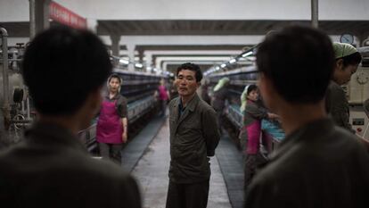 “Nuestro salario básico es de 20.000 won (unos 18 euros) al mes, pero si producimos mucho podemos llegar a mucho más, hasta 300.000 won (unos 280 euros)”, explica Bak Yong-hay, una obrera que lleva 20 años trabajando en la fábrica. “Pero nuestro gobierno nos subvenciona la vivienda, la electricidad, la alimentación. Por eso no vivimos preocupadas del salario. Y saber que tenemos las necesidades cubiertas nos hace trabajar con más ganas para aumentar la producción y beneficiar así al pueblo”, declara.