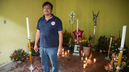 La casa donde vive la familia parece un cementerio. En la entrada han colocado un altar con fotos de las dos, velas y muchas flores. Campos lo recorre cada día para ir a trabajar. En la puerta de la calle se lee: "Los rosarios serán a las ocho de la noche. Gracias".