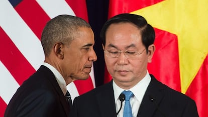 El presidente de EE UU, Barack Obama, se encuentra esta semana en una gira por Asia en la que aspira a cerrar viejas heridas de las guerras que su país ha combatido en el continente. Este lunes dio un paso de enorme importancia simbólica en este sentido: anunció, en una rueda de prensa en Hanói junto al presidente Tran Dai Quang el fin definitivo al embargo de armas a Vietnam que aún persistía desde el fin de la sangrienta guerra entre las dos naciones.