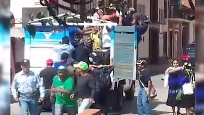 El sacerdote confirmó que el grupo de 30 hombres irrumpió de forma violenta y se llevó a golpes a los diputados del Partido Verde ecologista. En los vídeos que circulan por las redes sociales se observa como el grupo de sube a los diputados a un camión ante la mirada de decenas de personas, entre ellas varios turistas, concentradas a las afueras de la Diócesis, en el corazón de San Cristóbal. Otros diputados, del PAN y PRI , lograron escabullirse aprovechando la confusión.