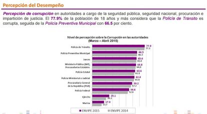 El policía es el primer contacto que la ciudadanía tiene con el sistema judicial, ya sea que alguien lo acusa de un delito o que él acusa a otro. Por ello, los expertos advierten que es la figura más importante de toda la cadena, ya que de él depende el ingreso de la persona a un Ministerio público y por cuáles faltas será juzgada. Sin embargo, los cuerpos policiacos son una de las figuras más contaminadas por la corrupción, según estudios del Instituto de Geografía, la Universidad Nacional y organizaciones civiles.