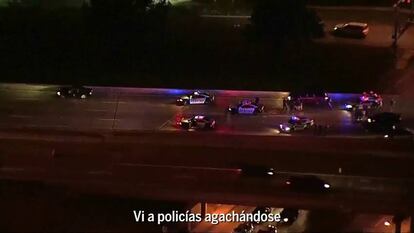 Un vídeo grabado durante el tiroteo de Dallas muestra cómo uno de los hombres perseguidos por haber disparado contra la policía abre fuego a quemarropa contra un agente que intenta acorralarlo. Al menos dos francotiradores han abierto fuego contra los funcionarios que controlaban una manifestación para protestar por la violencia de la policía contra los negros que se celebraba en la ciudad tejana. Cinco agentes han sido asesinados y otros seis han resultado heridos durante el tiroteo.