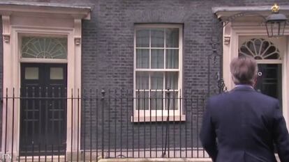 El primer ministro británico, tras anunciar su adiós en la puerta de Downing Street, se marcha canturreando una melodía