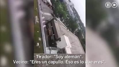 David Sonboly mató presuntamente a tiros en la tarde del viernes a nueve personas en las inmediaciones de un centro comercial de Múnich y poco después acabó con su propia vida. Tenía 18 años. El motivo de la matanza, según la Policía germana, no está claro. Sin embargo, y tras una conversación con un vecino que grabó el ataque en directo, el autor de nacionalidad alemana e iraní despertaba un odio hacia los turcos e insistía en su condición germana. A continuación, la transcripción en castellano de la conversación entre el tirador y ese ciudadano.