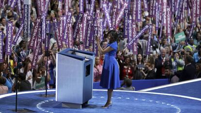 Michelle Obama cristalizó la paz con Hillary Clinton durante su discurso, este lunes, en la convención demócrata en Filadelfia. La primera dama ofreció un discurso apasionado y emotivo en el que apeló al carácter histórico de que una mujer salga elegida para la Casa Blanca. Obama defendió sin tapujos su apoyo a Hillary Clinton, su antigua adversaria.
