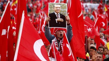 La manifestación —20.000 personas, según la policía, y 40.000, según los organizadores— la convocó la asociación Unión de Demócratas Turcos Europeos (UETD, en sus siglas en alemán), un grupo financiado desde Ankara por el Partido de la Justicia y el Desarrollo (AKP) de Erdogan.
