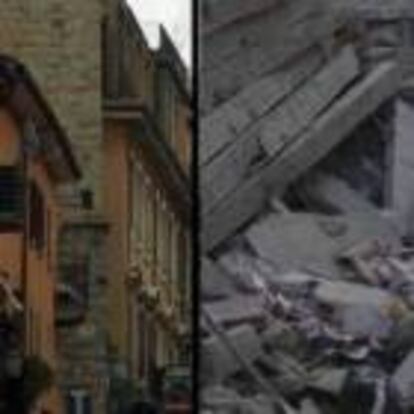 Este vídeo muestra el aspecto del municipio de 2.600 habitantes y casas bajas de piedra antes de que el terremoto arrasara con ellas y una vez que el 70% de las construcciones han quedado derruidas