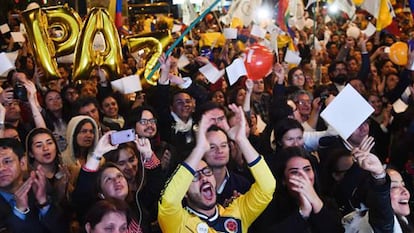 Los esfuerzos del Gobierno colombiano se centrarán ahora en lograr el mayor apoyo posible para que los acuerdos sean refrendados el 2 de octubre. El apretón de manos entre Iván Márquez y Humberto de la Calle supuso otro impulso en las negociaciones, tan necesitada como está de confianza. Los actos que se convocaron en distintas ciudades del país a través de las redes sociales para seguir la retransmisión del acuerdo y la alocución del presidente se convirtieron en una suerte de apoyo y reivindicación del sí.