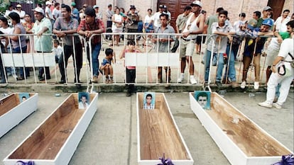 Desde finales de los noventa, las Autodefensas de Camilo Morantes, jefe paramilitar que comandaba entre 200 y 300 hombres en la región, ya rondaban una ciudad con gran presencia del Ejército, la Policía y la Armada por su condición petrolera. “Pasamos de un grupo a otro y no sabíamos cuál era peor”, asegura Peña. Durante la desmovilización de los paramilitares, a principios de 2000, en los procesos de Justicia y Paz, varios implicados en la matanza del 16 de mayo no solo confesaron su autoría, es decir, cómo durante 23 días después del secuestro mataron y desaparecieron a los retenidos. También relataron la implicación de la Fuerza Pública. “Desde el Batallón Nueva Granada les dieron media hora para entrar y salir y no dejar muertos”, asegura Peña. Se pasaron del tiempo estimado en 10 minutos y dejaron un reguero de sangre difícil de justificar ante los tribunales.