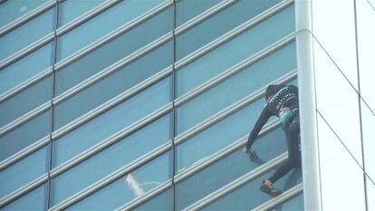 Alain Robert, de 54 años, ha subido a una torre de 185 metros en el barrio financiero de La Défense. Lo ha hecho en menos de una hora, usando solo las manos y los pies, sin ayuda de cuerdas o equipos para escalar, ante la mirada sorprendida de trabajadores y personas que pasaban por la zona. Robert se ha ganado el apodo de Hombre Araña francés es porque ha trepado decenas de edificios en todo el mundo, incluido el Burj Khalifa de Dubái, la construcción más alta del mundo.
