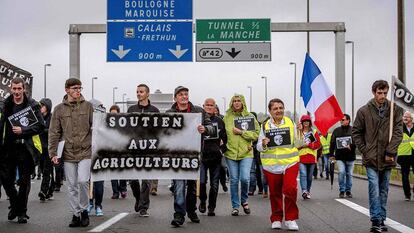 Protesta de vecinos y camioneros en Calais contra los migrantes de ‘La Jungla’