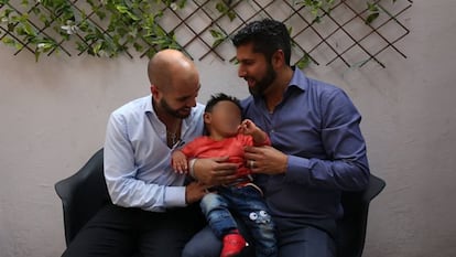 Leonardo Poblete no podía con los nervios y la emoción. Habían pasado cuatro años y medio desde que él y su pareja Mauricio Camarena decidieron que querían convertirse en padres. Una sala llena de familiares y amigos clavaba sus miradas en ellos, y poco después les entregaron una foto de su nuevo hijo. “Les presento a Leonardo”. Mientras veían la imagen desconcertados, una mujer llegó con el bebé en brazos. “Fue un momento mágico”, confiesa conmovido Poblete. La adopción homoparental se había instaurado desde 2009 en la Ciudad de México, pero ellos fueron en marzo de este año una de las primeras parejas que pudieron ejercer ese derecho en la capital.