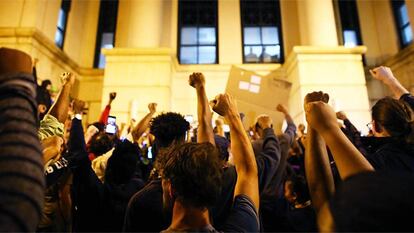 Manifestantes ante la comisaría de Charlotte tras conocer la muerte de Justin Carr.Vídeo: MIKE BLAKE