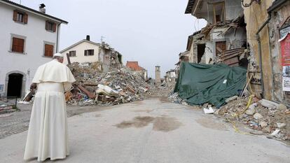 La visita del Papa devuelve la atención a la tragedia que vivieron las pequeñas localidades de Amatrice, Accumoli y Arquata y Pescara del Tronto. La imagen de Bergoglio rezando entre las montañas de escombros dentro de la zona roja recuerdan que los vecinos todavía están a la espera -y lo estarán por mucho tiempo- de volver a sus casas y reconstruir sus pueblos, en los que más de la mitad de los edificios están derrumbados.