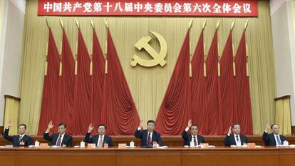 La designación se ha divulgado en un comunicado al término del Pleno, una cita que ha reunido durante cuatro días a casi 400 dirigentes a puerta cerrada y dentro de un estricto cordón de seguridad en un hotel militar del oeste de Pekín. El documento, distribuido por la agencia oficial, Xinhua, insta a los 89 millones de militantes del Partido Comunista de China a “unirse firmemente en torno al Comité Central, con el camarada Xi Jinping como núcleo”.