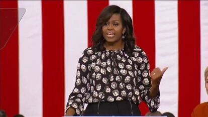 Todo empezó el pasado mes de julio. Desde que Clinton anunciara su candidatura más de un año antes, la primera dama pasó varios meses en silencio. Esperó hasta la Convención Nacional de Filadelfia para dar su apoyo a la nominada demócrata, a su manera. Aquel discurso es ya uno de los momentos más memorables de la campaña, como también su frase de “cuando ellos se rebajan, nosotros nos elevamos”, en referencia a la negatividad y los insultos de los republicanos.