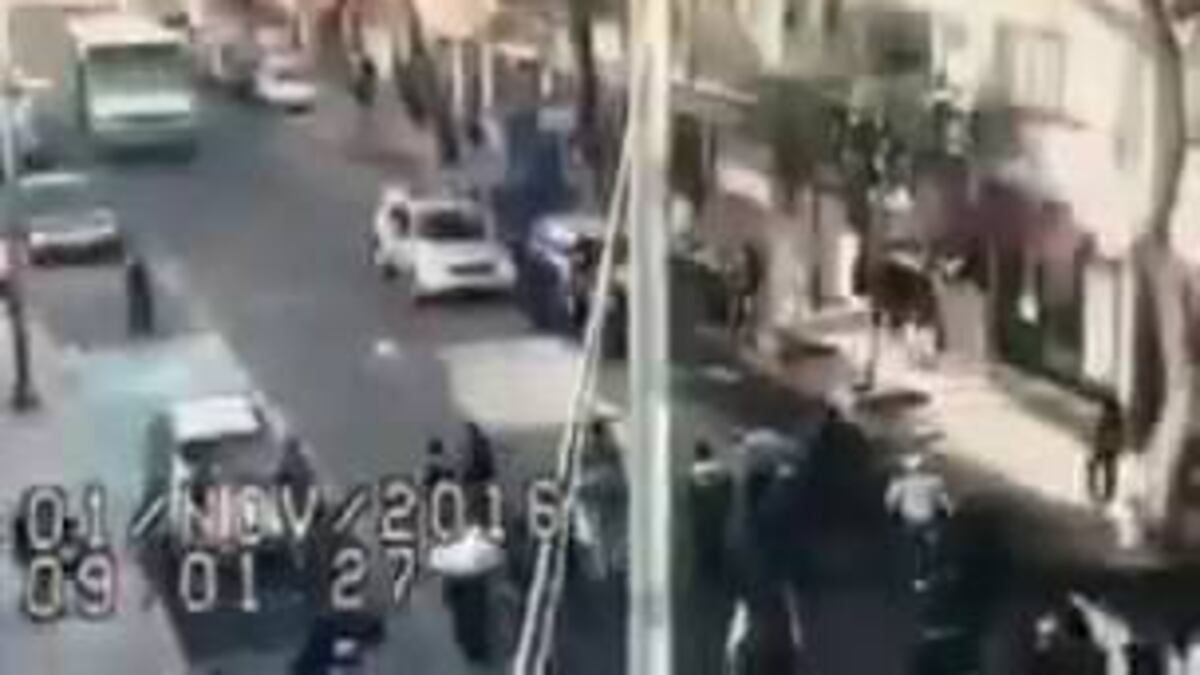 Un vídeo de las cámaras de seguridad pública muestra como una turba se enzarza a golpes en la calle donde se estaba rodando la película