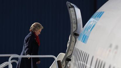 No llega a ser pánico, se acerca más a la angustia, a un miedo que para siempre será ya bautizado como ‘el fantasma del Brexit’ (si no el de Trump). De lo que no hay duda es de que existe ansiedad, una ansiedad tan intensa que si fuera materia se podría cortar dentro del avión de campaña que traslada ininterrumpidamente a la candidata demócrata a la Casa Blanca, Hillary Clinton. Quedan 72 horas para el día de las elecciones y el equipo electoral de la antigua secretaria de Estado da muestras de nerviosismo debido a unas encuestas confusas y no favorables. Unas peligrosas turbulencias se han colado en una hoja de ruta que parecía despejada de baches en el camino a la presidencia.