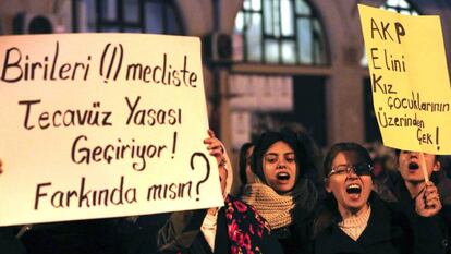 “El abuso de menores y el matrimonio forzoso infantil son dos cuestiones muy serias en Turquía y sus números no son pequeños”, advierte en declaraciones a EL PAÍS la activista Ilke Gökdemir, voluntaria de la fundación Mor Çati, de apoyo a mujeres maltratadas: “No es extraño que este Gobierno, que busca imponer una política tan conservadora, proponga este tipo de cuestiones, pero aquí han ido demasiado lejos. El abuso de menores es algo inaceptable”. De todas formas, Gökdemir no quiere cantar victoria todavía pues, alega, “la propuesta solo ha sido devuelta a comisión” y se desconoce que ocurrirá después. Además, alerta de que otra proposición, que reduce la edad de consentimiento para mantener relaciones sexuales a 12 años, sí será votada en la tarde de este martes en el Parlamento turco. Turquía dispone de unas de las leyes más severas del mundo contra el abuso infantil y, de hecho, cualquier relación sexual con un menor de edad es considerada “abuso”.