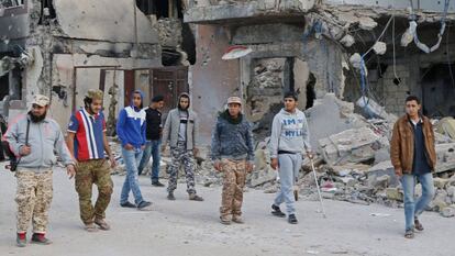 El coronel Ismail Shukri no disimula su satisfacción, pero tampoco su preocupación. Después de dos años, las tropas libias han recuperado el control de Sirte, bastión del Estado Islámico (ISIS, por sus siglas en inglés) en el norte de África. “Hemos liberado la ciudad, pero la guerra contra los yihadistas no ha terminado”, dice el jefe de la seguridad militar. Del próspero puerto, donde vivían cerca de 100.000 personas, solo queda un amasijo de ruinas, con excepción de algunas escuelas y mezquitas en la periferia y del colosal Complejo Uagadugú, construido por el dictador Muamar al Gadafi. La población ha sido evacuada en su totalidad y no podrá volver hasta que el Ejército termine de neutralizar las innumerables trampas explosivas dejadas por los yihadistas.