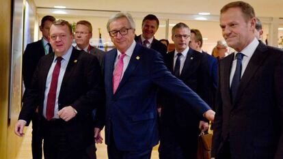 Los líderes volverán a reunirse sin Reino Unido en una cena que tiene que servir para simbolizar la unidad de los Veintisiete. Todo el mundo repite que los líderes hablarán solo de asuntos procedimentales: no habrá más sustancia que la que ya se adelantó en la reunión de junio, tras el referéndum. Londres ha conseguido que el resto de Europa cierre filas. Y Reino Unido ya ni siquiera protesta: el Gobierno británico asegura que revelará sus planes en febrero, pero las fuentes consultadas en Bruselas coinciden en que a día de hoy no hay planes. No hay nada. Nada de nada. Tampoco por el lado europeo: el anexo de las conclusiones de la cumbre relativo al Brexit viene a repetir las conclusiones de junio. Los líderes vuelven a señalar sus líneas rojas, en un texto dividido en ocho puntos que pueden resumirse en tres. Uno: no habrá negociación hasta que Londres notifique la salida, tal como reiteran los primeros ministros de los grandes, de los medianos y de los pequeños países de la Unión. Dos: la Comisión Europea será quien lleve la voz cantante en la negociación. Y tres: Londres no participará en las discusiones preparatorias sobre el Brexit.