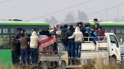 El Observatorio, por otra parte, señaló que ningún enfermo o herido ha salido de los pueblos de mayoría chií de Al Fua y Kefraya, enclavados en territorio insurrecto en la provincia de Idlib y sitiados desde hace más de un año. Ayer, un convoy de ambulancias se dirigió a esas dos localidades para facilitar la evacuación, que todavía no se ha producido. La salida de los pacientes de las dos ciudades forma parte del acuerdo de evacuación de Alepo, ya que fue una de las condiciones impuestas por Irán, aliado del Gobierno de Damasco, para permitir la marcha de rebeldes y civiles de la mayor ciudad del norte de Siria. "Ahrar al Sham y otros grupos rebeldes han impedido a los autobuses y las ambulancias llegar a Al Fua y Kefraya", según Rami Abdel Rahman, el director del Observatorio.