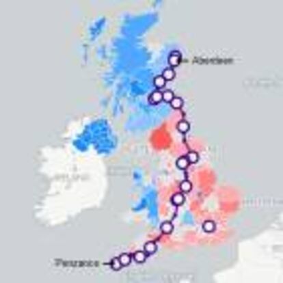 Recorrido por la ruta férrea más larga de Reino Unido (1.244 kilómetros, 773 millas) para tomar el pulso de los británicos sobre el referéndum en el que el jueves 23 decidirán si permanecen en la UE o la abandonan. Un recorrido a través de reportajes, fotografías, vídeos y entrevistas. Por María R. Sahuquillo