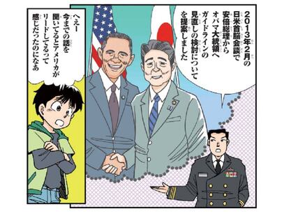 Los antecedentes bélicos de Japón y EE UU, la tirante relación con la antigua Unión Soviética en los años de la Guerra Fría y el terrorismo internacional dan inicio a una de las historietas publicadas este año por el Ministerio de Defensa de Japón bajo el título Libro blanco de la defensa en manga.