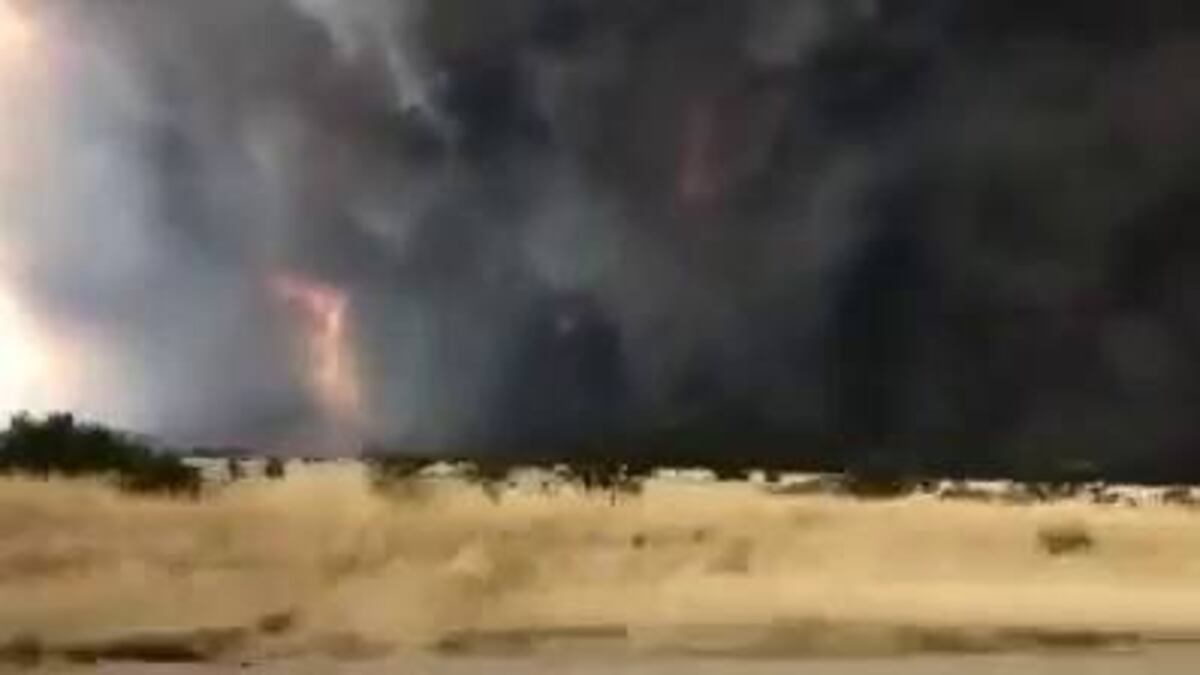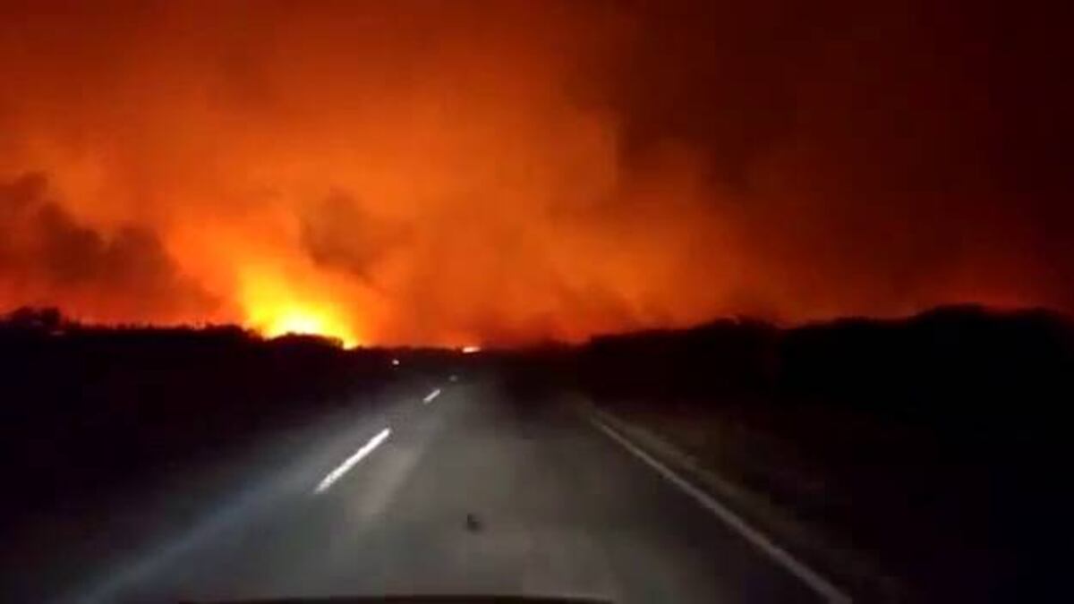 El vídeo, que pronto se volvió viral, se registró el el 31 de diciembre, pese a que su autor dice a la cámara que es 31 de enero. Una mujer a su lado no oculta sus nervios cuando el auto pasa por entre las llamas. La escena es una pequeña muestra de lo que están viviendo en la región.