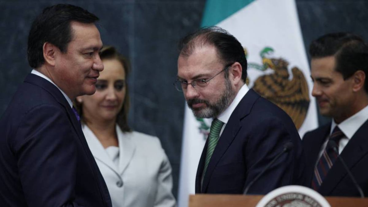 Un par de horas antes, en la residencia oficial de Los Pinos, el presidente Peña Nieto dio su primer mensaje y un oscuro presagio para 2017. “Será un año de retos y desafíos”, dijo. El mandatario aceptó la renuncia de Claudia Ruiz Massieu como ministra de Exteriores. La política, sobrina del expresidente Carlos Salinas de Gortari (1988-1994), deja la secretaría para darle paso a Videgaray. En el otoño pasado, las crónicas políticas de la prensa nacional detallaban un enfrentamiento entre ambos ministros. Videgaray, en ese entonces omnipotente secretario de Hacienda, promovió la visita de Donald Trump al país. Ruiz Massieu y el secretario de Gobernación (Interior), Miguel Ángel Osorio Chong, se opusieron firmemente a que el candidato republicano, que insultó a los mexicanos desde el primer día de su campaña, pisara el territorio nacional.