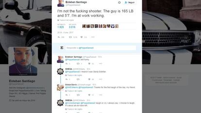"No soy el jodido tirador. El tipo pesa 165 libras y mide 5,7 (pies). Estoy en el trabajo trabajando". Esta ha sido la amarga queja en Twitter de Esteban Santiago, un usuario de la red social cuyo nombre coincide con el del hombre detenido en el aeropuerto y cuyo teléfono móvil "se ha vuelto loco" desde que se conoció la identidad.