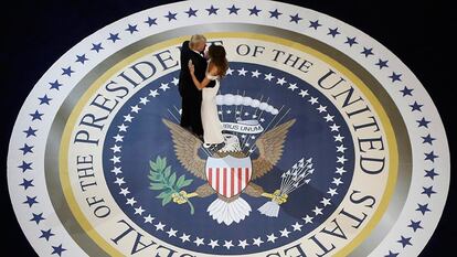 Con la imagen del magnate y su esposa en el baile inaugural, el nuevo presidente, la persona que desafió durante la campaña las normas políticas y los protocolos, empieza a amoldarse a las tradiciones presidenciales estadounidenses. Desde su toma de posesión este viernes al mediodía, Trump ya ha firmado los primeros decretos, ha viajado en La Bestia (el nombre del coche del presidente) y se ha fotografiado sentado por primera vez en el Despacho Oval de la Casa Blanca.
