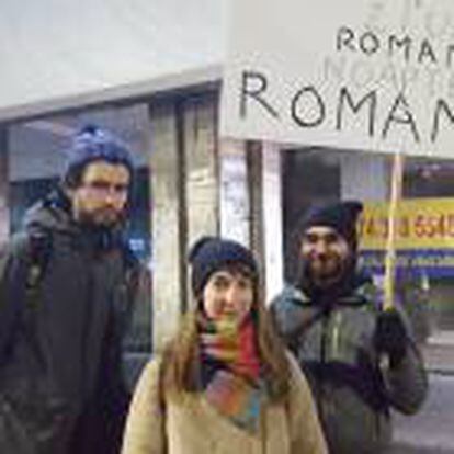 "Queremos un Gobierno que nos defienda de los delitos, que haga lo posible para luchar contra la corrupción, no que la ampare", dice Alex, de 30 años (a la derecha, con la pancarta). A su lado, su novia Alexandra y su amigo Criprian. Explican que no solo protestan contra el Gobierno socialdemócrata, sino contra toda la clase dirigente que ha construido o perpetuado un sistema "corrupto desde la base".