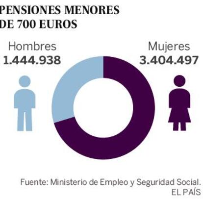 La radiografía de las pensiones ofrece una foto fija de la realidad social española. Y de la historia. Hasta hace poco más de una década, era más frecuente que las mujeres españolas percibieran una pensión de viudedad que de jubilación, según datos históricos del Ministerio de Empleo. Hoy ya no es así, pero mientras dos millones de mujeres reciben pensión de jubilación, 1,6 millones la tienen por viudedad, es decir, relacionada con la cotización del que fue su marido, según datos de 2016.