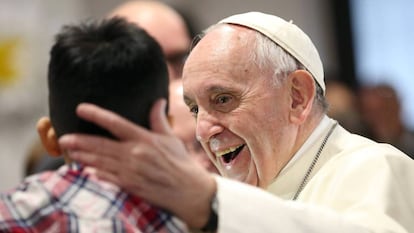 Lo primero que hizo Jorge Mario Bergoglio (Buenos Aires, 1936) al salir al balcón del Vaticano, convertido ya en el papa Francisco, fue dedicar una oración a Benedicto XVI: un pontífice emérito que por primera vez desde la Edad Media iba a convivir con el nuevo. Una característica que ya de por si haría único su mandato dese el primer día. El respeto y la buena relación que han mantenido —cuentan que Bergoglio dio un paso atrás en el anterior cónclave cuando el elegido fue Ratzinger— ha sido uno de los ejes gravitacionales de su mandato. Pero partiendo de ese respeto, también emerge una de las grandes diferencias. Mientras la Iglesia de Benedicto XVI se construía, fundamentalmente, a través de la teología, la de Francisco mira al cielo desde una actitud mucho más pastoral y cercana a la tierra: con los gestos y con un lenguaje de proximidad. Al final, el relato que constituye el abrazo a un grave enfermo de neurofibromatosis —la imagen dio la vuelta al mundo— puede ser más poderoso que una encíclica.