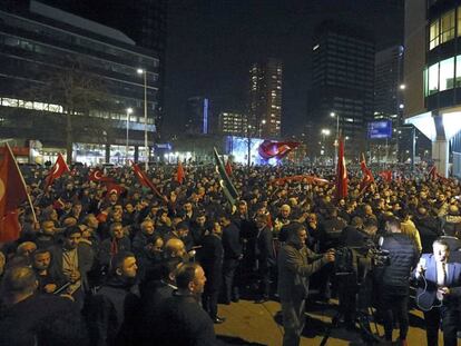 El líder islamista, de hecho, no ha ahorrado adjetivos despectivos y exageraciones hacia el Gobierno holandés, al que ha acusado de “nazi”, “fascista” y “promotor del terrorismo” (mismos calificativos que aplica a Alemania por permitir manifestaciones de simpatizantes del grupo armado kurdo PKK e impedir las de su formación política) e incluso ha llegado a decir que los agentes de policía holandeses estuvieron a punto de “provocar la muerte” de la ministra turca de Familia, Betül Kaya, por mantenerla retenida durante horas cuando el sábado le impidieron acceder al consulado turco de Róterdam.