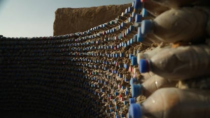 Un grupo de mujeres toma el té a la sombra de una jaima y observa la construcción de una extraña casa circular. La vivienda a medio hacer es un invento de Tateh Lehbib Braica, ingeniero de 27 años, que deambula entre tres operarios. Todavía no hace mucho calor, pero en verano, con temperaturas superiores a los 50 grados centígrados, sería imposible estar al aire libre. En el suelo hay centenares de botellas de plástico de litro y medio, rellenas de arena, que sirven de ladrillos. Tateh ha encontrado en el desierto argelino que acoge a los refugiados saharauis un sistema para luchar contra las inclemencias del propio desierto.